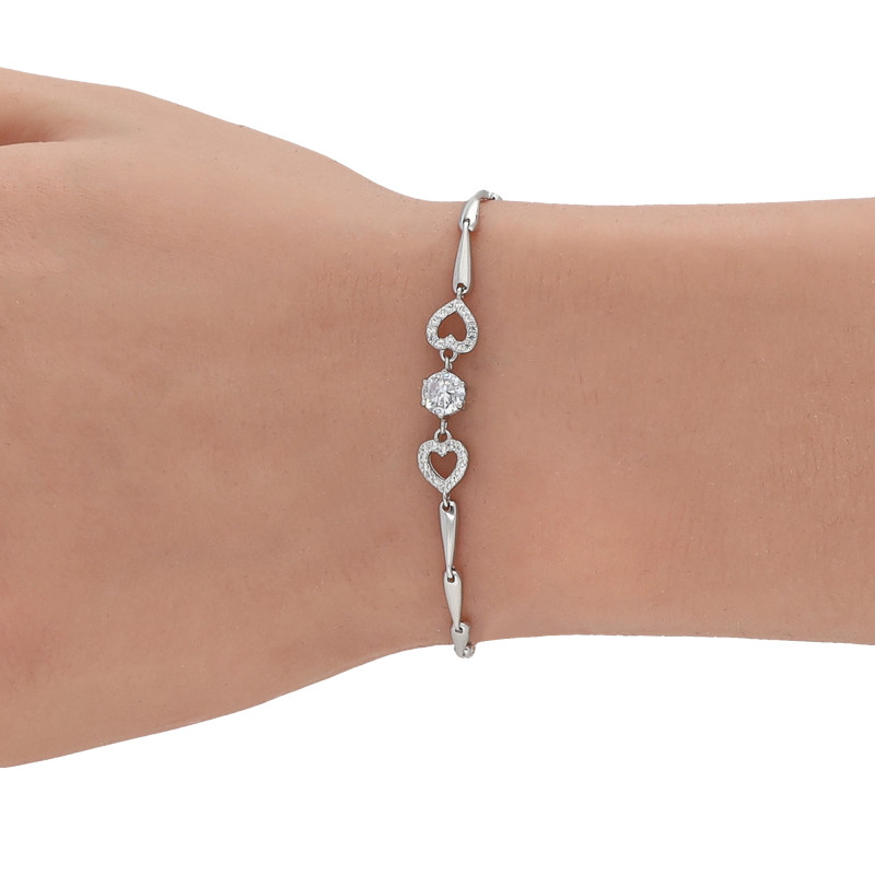 SREBRNA BRANSOLETKA RODOWANA SERCA Z CYRKONIAMI