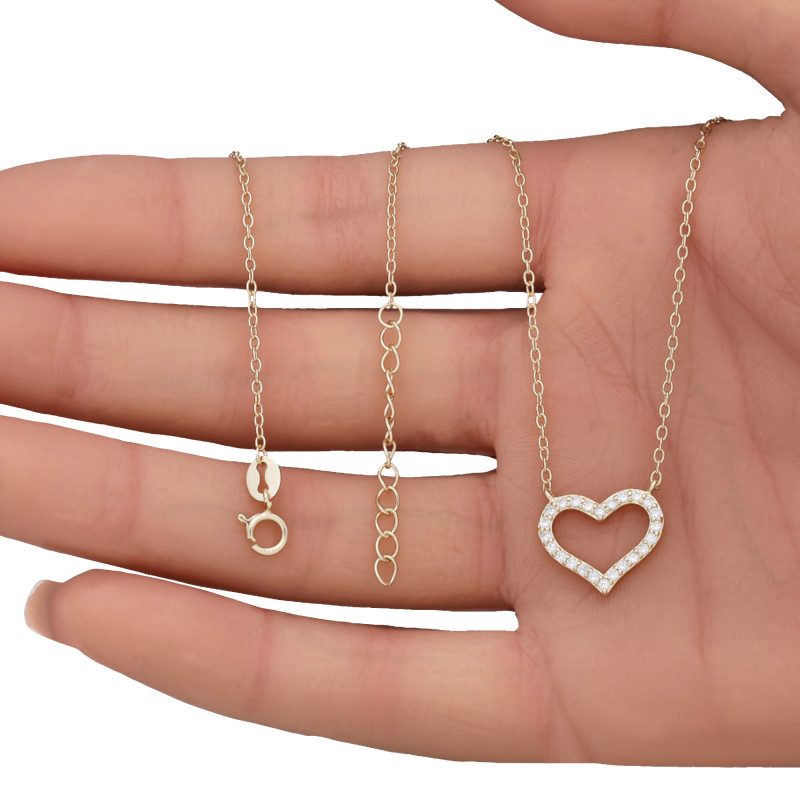 SREBRNY POZŁACANY NASZYJNIK CELEBRYTKA SERCE Z CYRKONIAMI